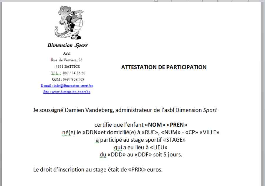 Les attestations fiscales et mutuelles vous permettent de déduire une partie du prix des stages ou des activités sportives réalisées dans notre association.
